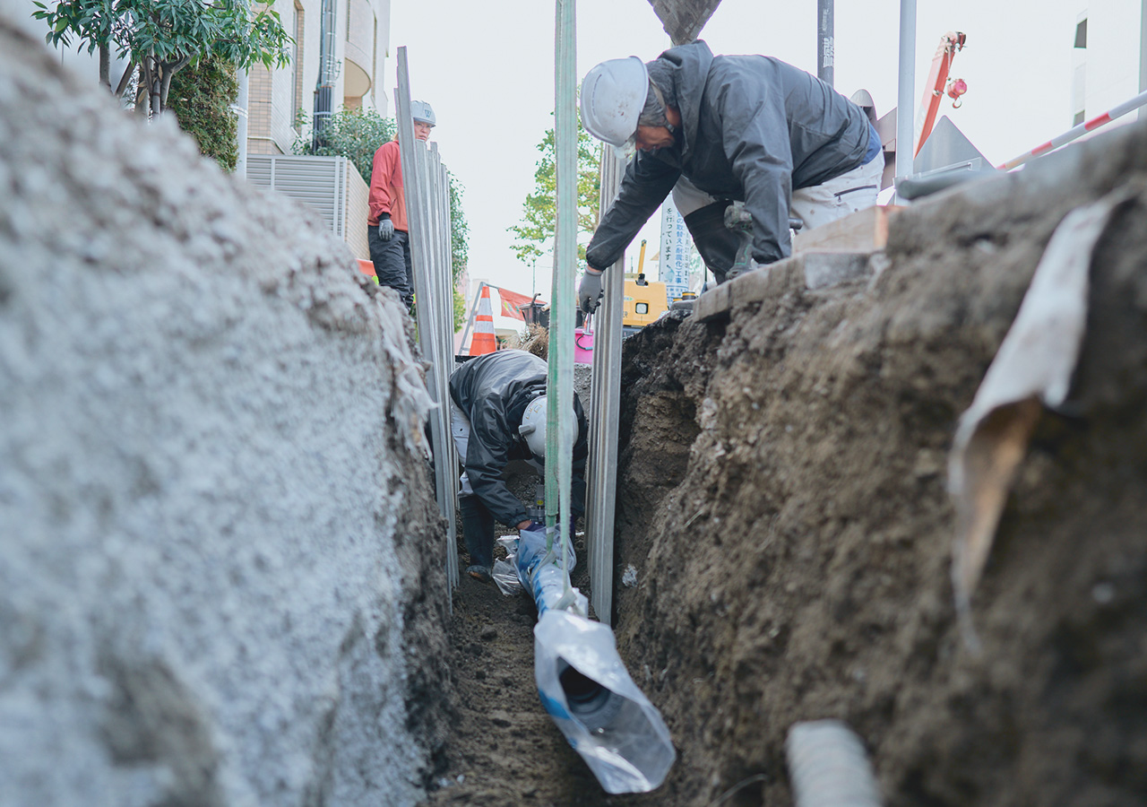 突発的な水道管の破損や漏水に即時駆けつけ、応急処置から本修理までを実施。